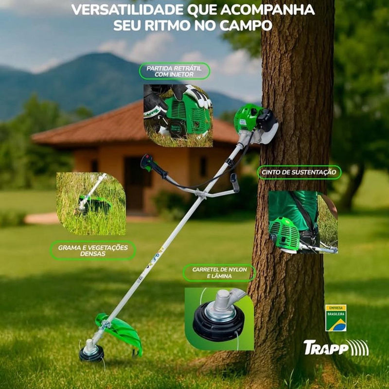 Roçadeira a Gasolina 2 Tempos Profissional 75CC 3HP Com Lâmina 3 e 2 Pontas Facão, Disco 80 Dentes, Kit de Reparo e Acessórios Knakasaki